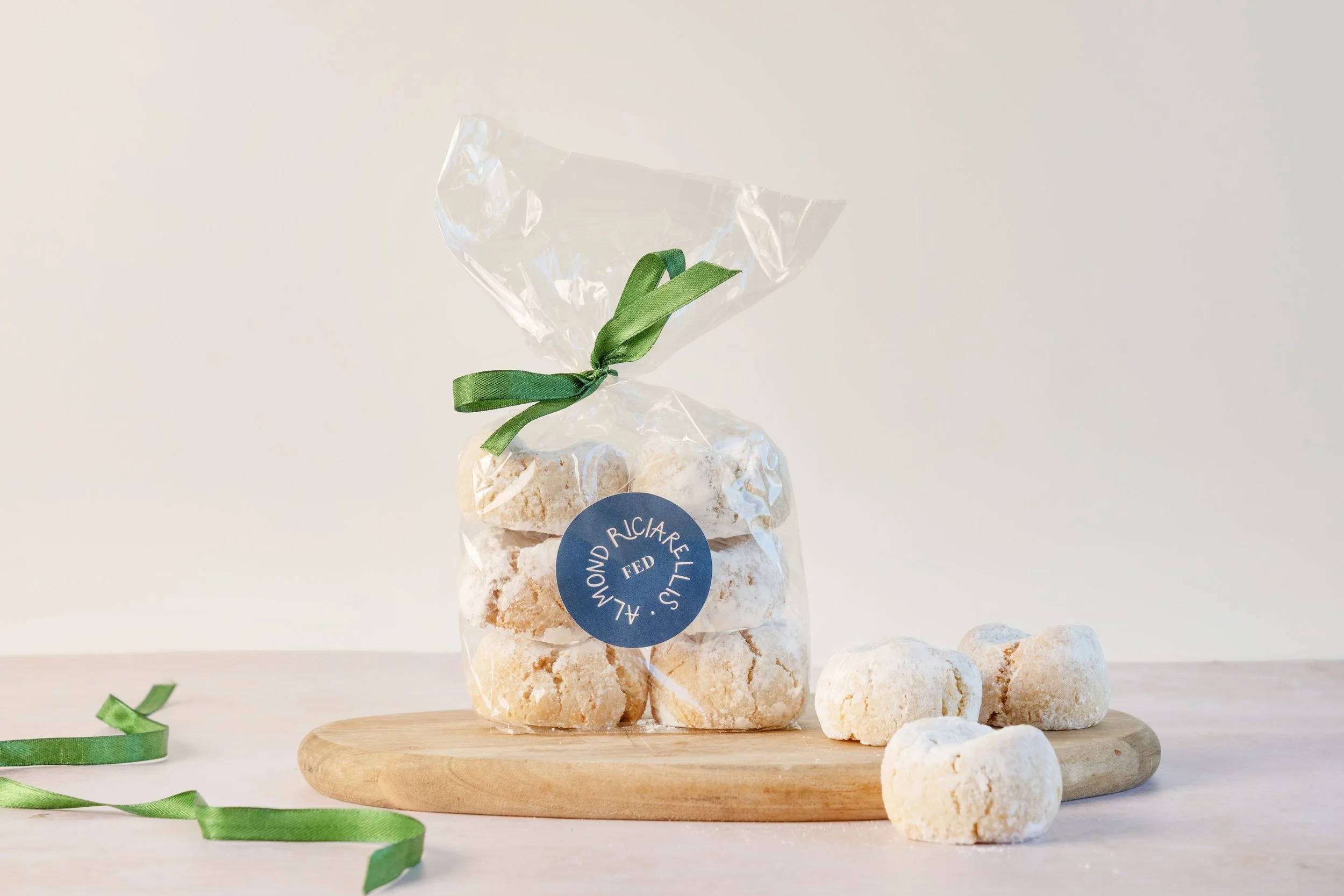 8 of our orange & almond riciarellis made with egg whites and organic British icing sugar